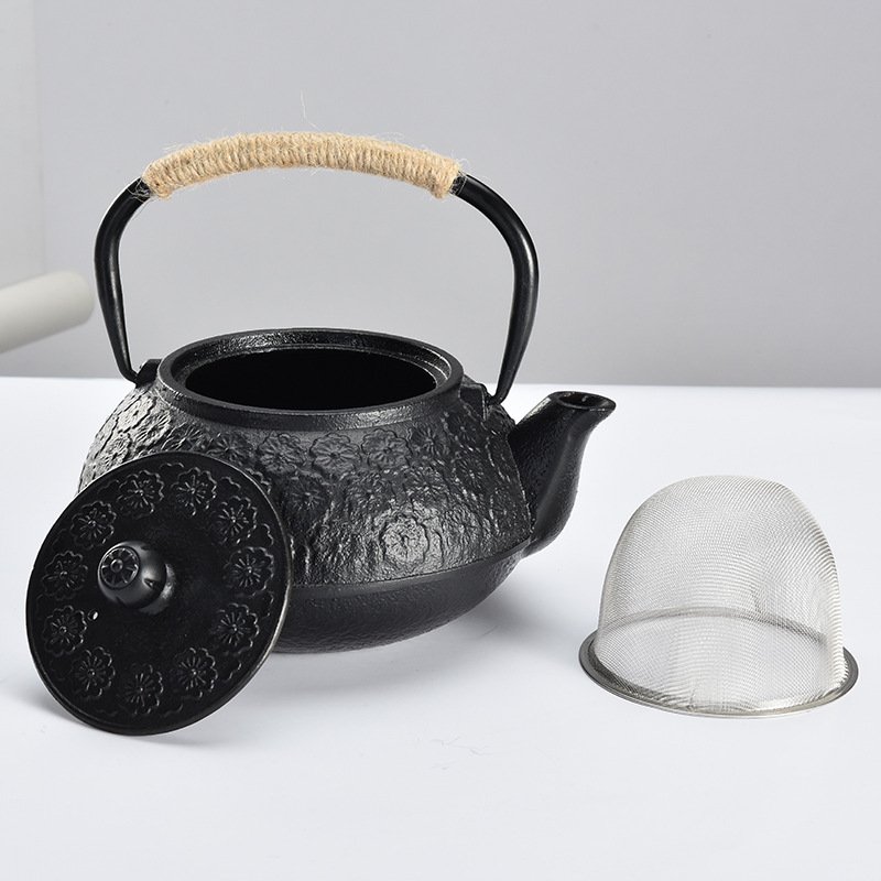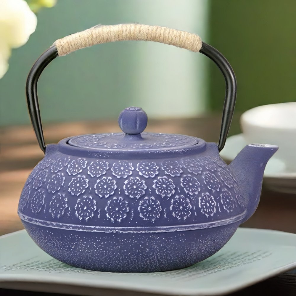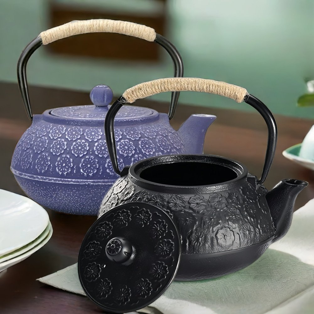 This Best Blue and Black Flower Enamel Japanese Tetsubin Cast Iron Tea Kettle combines traditional Japanese tea brewing methods with a modern aesthetic appeal. Each kettle is crafted from durable cast iron, ensuring longevity and excellent heat retention. The striking blue and black enamel finish is not only visually appealing but also protects the iron from rust and enhances the tea’s flavor by evenly distributing heat. The intricate floral design that adorns each kettle pays homage to traditional Japanese art, making it a stylish addition to any kitchen or tea service. The interior of the kettle is lined with enamel, which makes it ideal for brewing various types of tea and easy to clean, ensuring flavors aren’t transferred between brews. The kettle features a large capacity, perfect for serving multiple guests, and includes a stainless steel infuser that can accommodate loose-leaf teas, allowing for perfect infusion and easy placement or removal. This tea kettle not only serves as a functional vessel for making delicious tea but also doubles as a decorative piece, enhancing the elegance of home décor and making it a significant centerpiece for tea gatherings or quiet evenings at home.