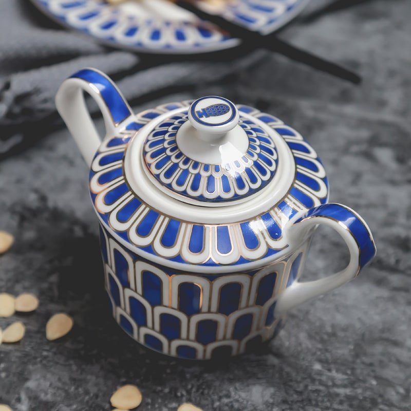 Savor the elegance of bygone eras with our Bone-china Vintage Tea Set With Gold Glaze, an exquisite marriage of classic design and modern luxury. This Bone-china Vintage Tea Set With Gold Glaze, destined for export to the discerning markets of the Middle East, speaks of a sophistication that is timeless. Each piece is a work of art, with its generous blue hues complemented by the regal touch of gold lines, and the pristine white bringing a U-shaped elegance that elevates the set’s silhouette to a statement of grace.