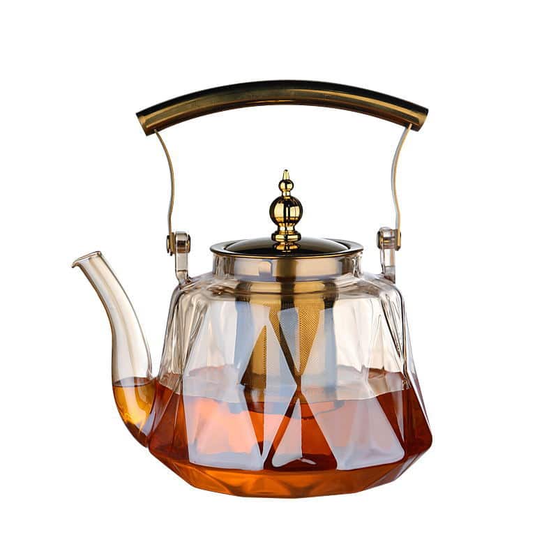 Indulge in the perfect fusion of elegance and functionality with our Copper Handle Borosilicate Heat-resistant Glass Teapot. Meticulously crafted from high-grade borosilicate glass, this Copper Handle Borosilicate Heat-resistant Glass Teapot is designed to withstand extreme temperatures, making it ideal for both hot and cold brews. With a low coefficient of thermal expansion, our glass material ensures durability and resilience, allowing direct heating on an electric ceramic stove without fear of damage.