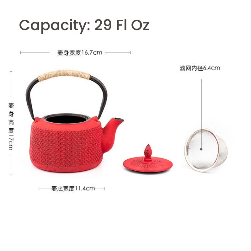 | Features | Durable Cast Iron Construction, Green and Red Enamel Finish, Optimal Heat Retention, Stainless Steel Infuser Included, Traditional Japanese Design |